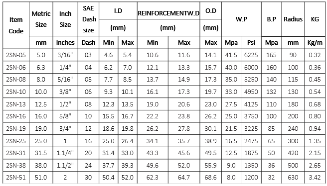 High-pressure hydraulic lines. Meets or exceeds the requirements of SAE 100R2AT performance requirements of EN853 2SN.